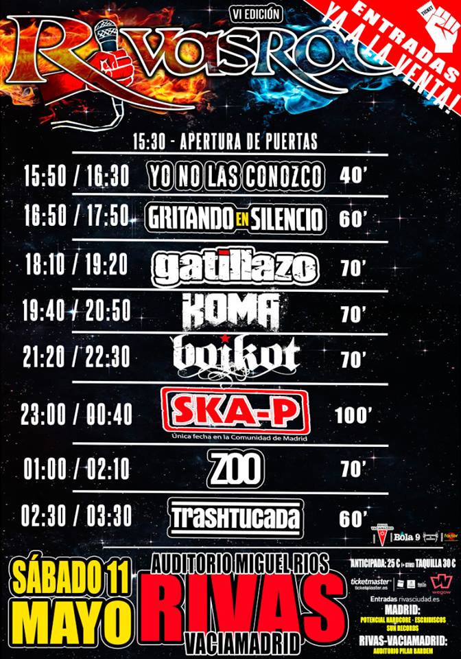 La próxima edición del festival Rivas Rock regresará a la ciudad de Rivas Vaciamadrid, muy cerca de Madrid, el próximo sábado 11