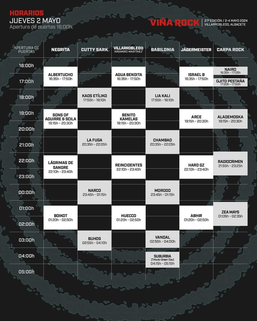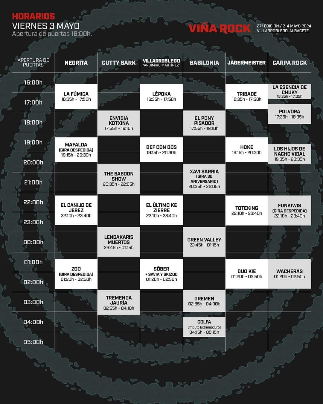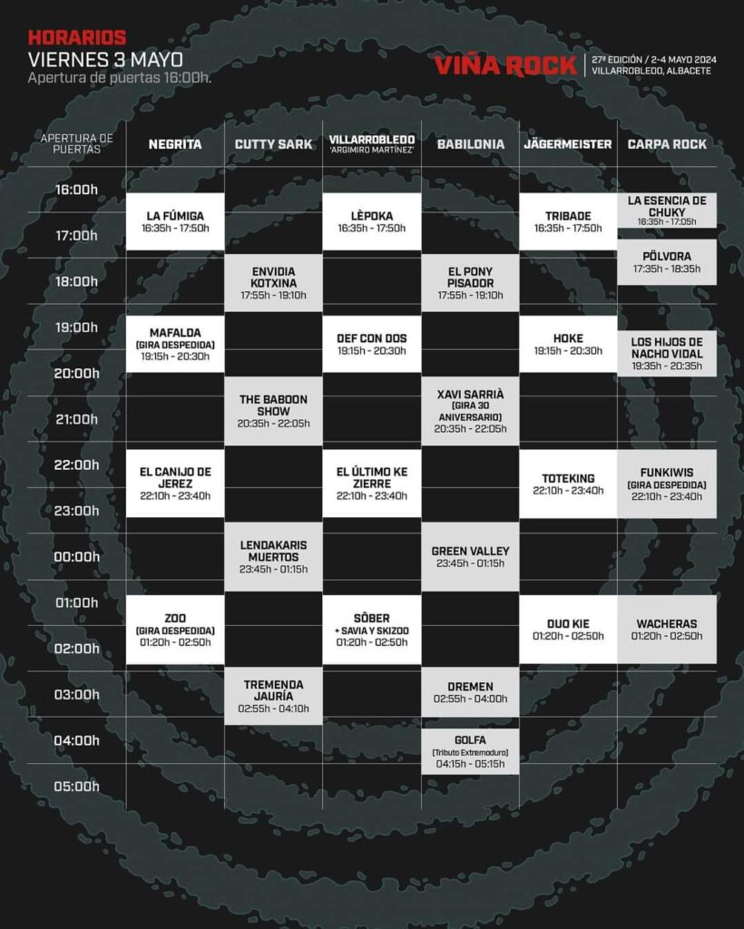 A punto de comenzar la edición 27 del Festival Viña Rock, Villarrobledo está preparada y con todo el dispositivo necesario dispuesto para recibir a todos los viñarokeros que a partir del miércoles día 1 de mayo y hasta el sábado 4 disfrutaran de uno de los festivales más importantes del país y, sin duda el más importante de Castilla la Mancha.