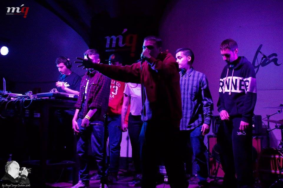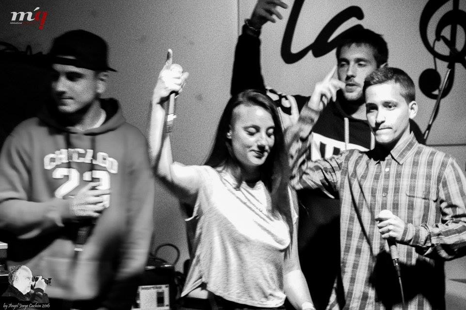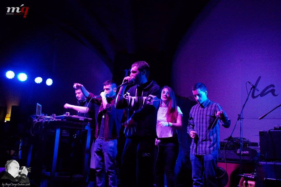 Los siguientes en subir al escenario fueron ESCUELA LIRIKA que antes de comenzar con su repertorio y consumir el tiempo que tenían estipulado para su actuación, nos sorprendieron con una fusión en dos temas con VERTICAL. Expectantes estábamos ante este colectivo de RAP local muy numeroso, ESCUELA LIRIKA, ganadores del concurso de bandas Musikalcazar del pasado año. Venían de llenar otras salas de la comarca. Dieron rienda suelta al ritmo y la poesía de todo su repertorio cargado de unas letras directas, con voz femenina (LayDeliriouss) y mezclas en los platos incluida.