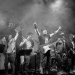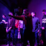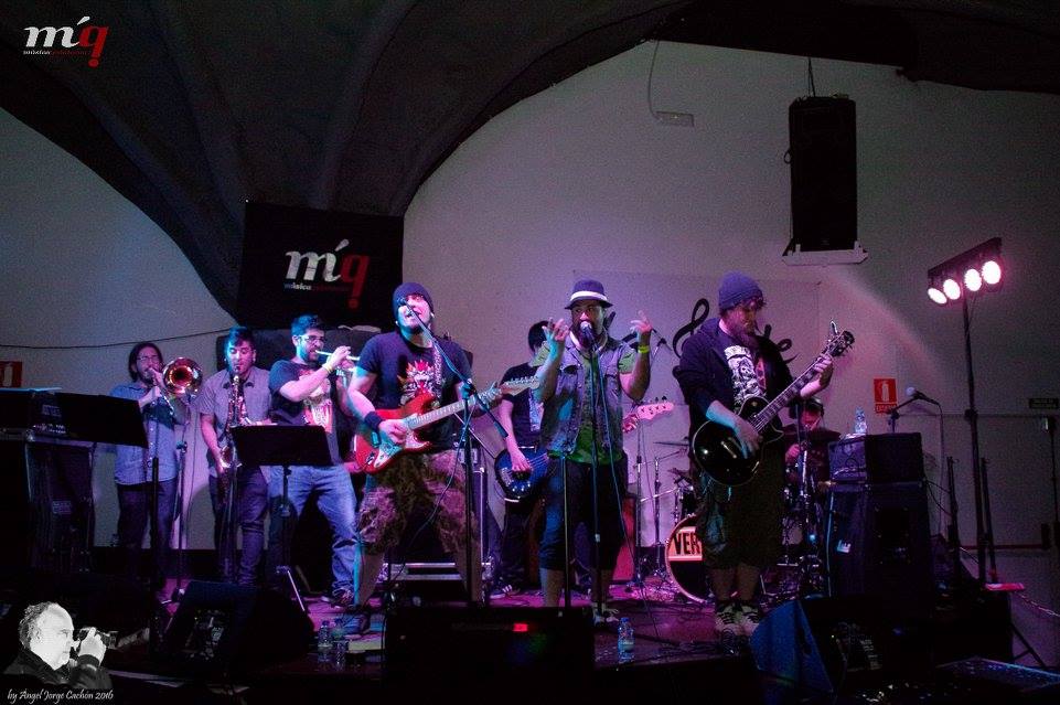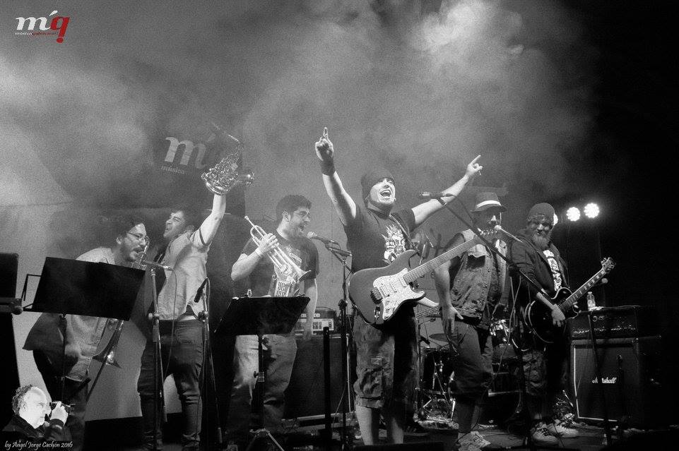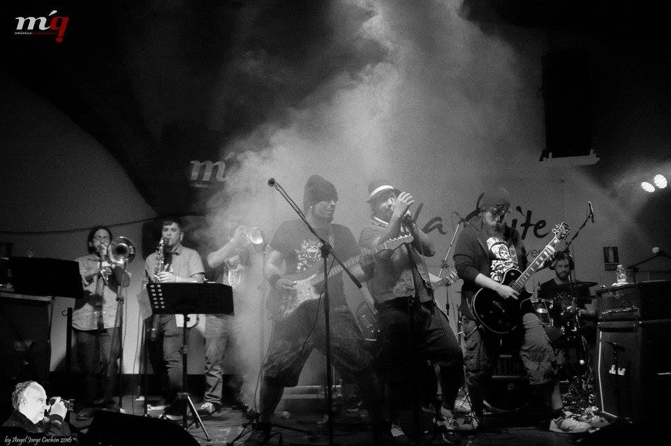La noche iba tocando a su fin, pero faltaba el plato fuerte. De Miguelturra C-Real, LA RECUA fiesta por todo lo alto con ocho tíos encima del escenario, ska, punk del bueno, mezcla de versiones con temas propios. nos presentaron su primer single «Corredor» que acaban de grabar en Habitaz Estudios de Ciudad Ral, baile, marcha, ni un momento de respiro durante los cincuenta o sesenta minutos de actuación, una voz solista peculiar, muy personal, dos animadores que animaban a la peña.
