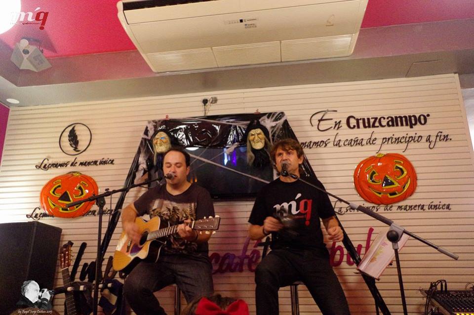 Eran la seis de la tarde del día 1 de Noviembre en el Pub-cafetería MÁS SEVEN, aún se podían apreciar restos en la decoración de la fiesta de halloween . Ahí estaban herMANAdos hoy por hoy uno de los mejores tributos a la banda mexicana que se puede ver en España. Lo del sitio, la hora, y el día es circunstancial (es verdad que Jesús, gerente de MÁS SEVEN es exquisito en el trato con su clientela) lo importante lo verdaderamente importante son los protagonistas. Dos tipos, que en ocasiones son cuatro, en este caso fueron dos, Rafael Martínez Campos y Ángel Perez son capaces de llenar allí donde van, pero no solo llenan, es que ponen al público del local de turno patas arriba¡¡. Eso solo está al alcance de grandes profesionales con estos dos: Rafa un prodigio con la guitarra, se ha subido al escenario con MANA en las dos últimas giras que la banda Mexicana ha llevado a cabo por España, y eso está al alcance de muy pocos.