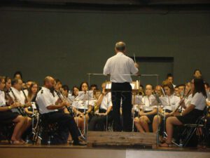 La Banda Sinfónica Municipal, dirigida por Sebastián Heras, se subía al escenario para interpretar conocidos y alegres pasodobles como “Quintanar”, “Azcárraga”, “Música y vinos”, “Polvorilla”, “Domingo Ortega”, “Ergaitano”, “El río Ramón”, “El Cordobés”, “Castillos de España”, “Suspiros de España” y “Nerva”,  que hicieron disfrutar al numeroso público asistente que abarrotó el Centro Cívico y que ovacionó a la agrupación al finalizar cada pieza.