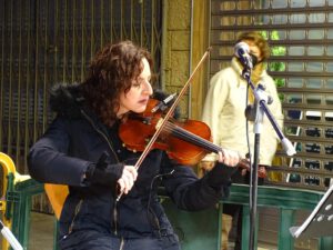 El violín es el compañero de viaje de Lourdes Manzaneque (Campo de Criptana) al que acompaña con una exquisita voz y así lo pudieron comprobar los asistentes al concierto. Un auténtico privilegio y un placer para los oídos escucharla cantar. Ha formado parte de numerosos e importantes proyectos musicales, así mismo ha participado en varios certámenes musicales consiguiendo en ellos resultados muy positivos.