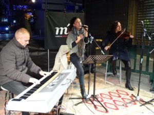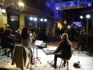 En esta ocasión, y comenzando con los actos de la Navidad, por lo que han servido, prácticamente de pistoletazo de salida, la Calle Grande, a la altura del Centro Cultural El Recrero, recibía a Montse Monreal a la voz, Lourdes Manzaneque con su violín y Ángel Porrero al piano que ofrecieron un magnífico concierto y encandilaron al público asistente con su talento.