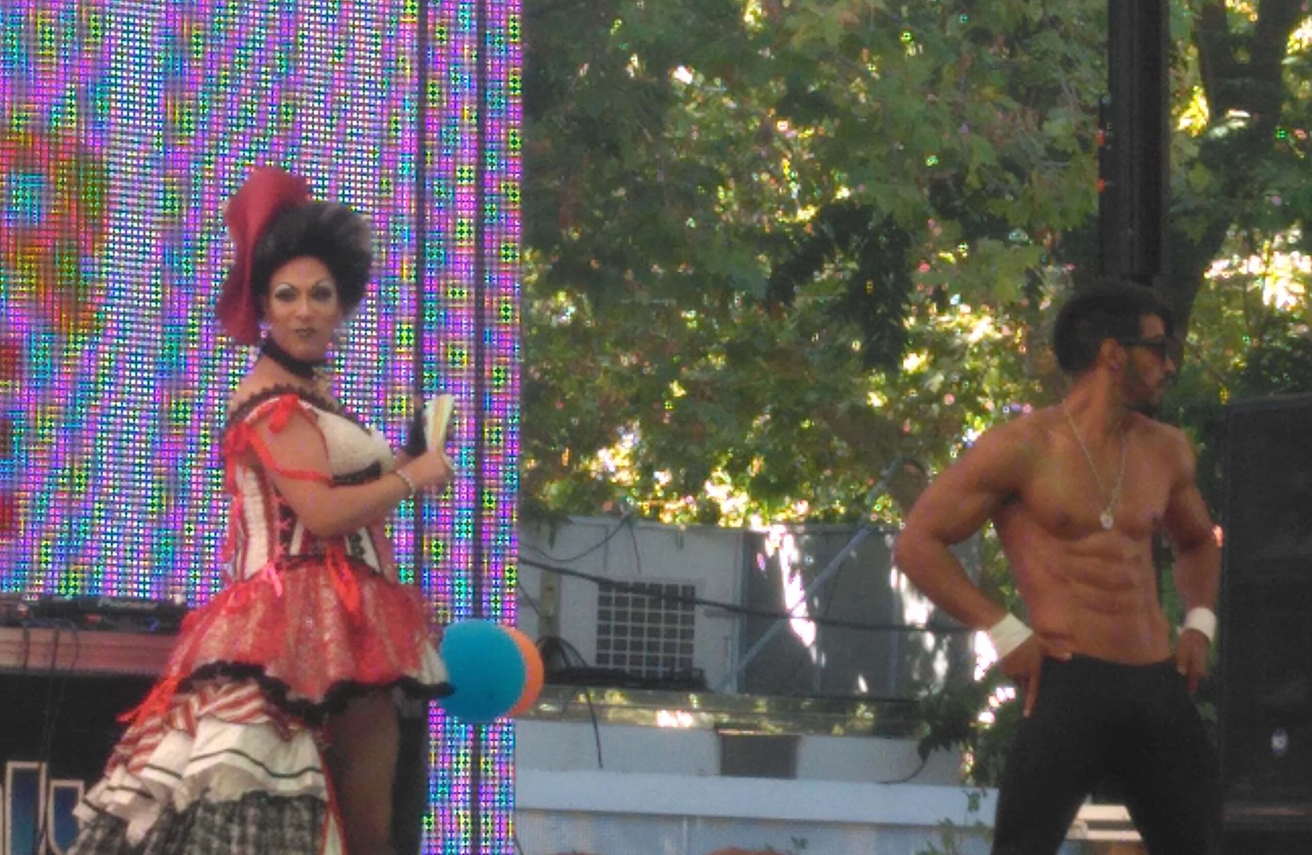 La Plaza de las Palomas se llenaba de color y diversión y mientras en el escenario se iban sucediendo las Drag Queen con música del DJ Lolito Malibú.